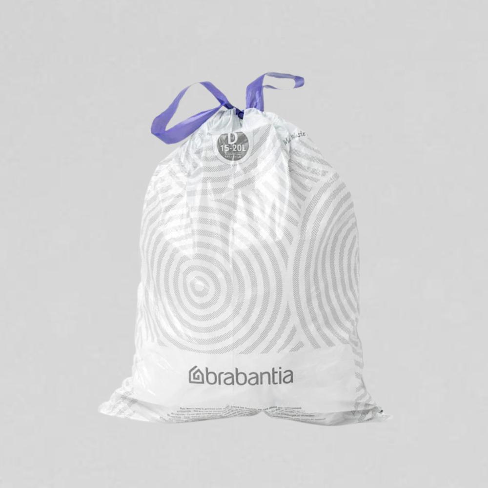 De Brabantia 20 Liter vuilniszakken zijn ideaal voor kleinere prullenbakken en maken afval weggooien eenvoudig en schoon. De Brabantia afvalzakken D passen perfect, blijven stevig zitten en scheuren niet tijdens gebruik. Met de Brabantia vuilniszak code D kies je voor een handige, betrouwbare en nette oplossing voor dagelijks afval.