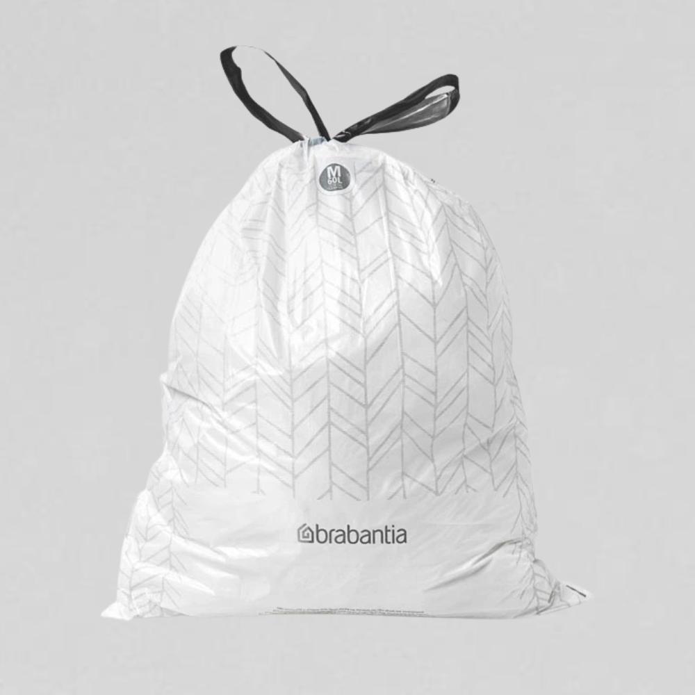 Brabantia vuilniszakken code M zijn vervaardigd van LDPE-plastic. Deze vuilniszakken hebben een afmeting van 69×79 cm en een dikte van 30 My. Deze zakken zijn onder andere geschikt voor Brabantia prullenbakken met code M. De vuilniszakken hebben een inhoud van 60 liter. De vuilniszakken zijn handig te sluiten en dragen met behulp van een trekbandsluiting. In een doos zitten 3 rollen à 10 zakken (30 zakken).