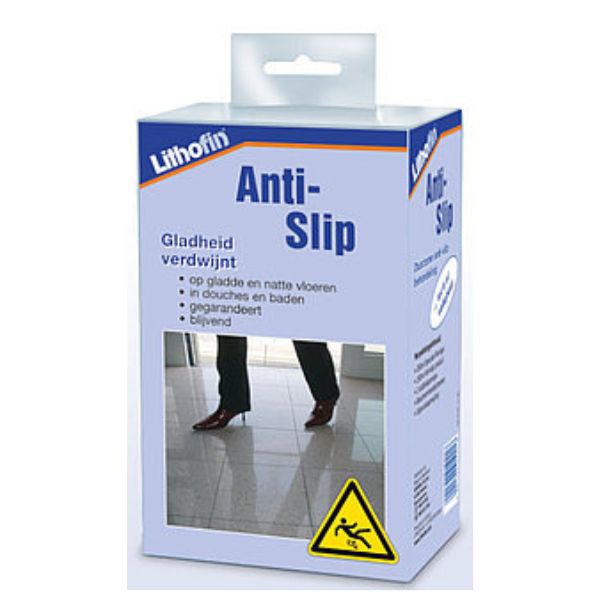 Lithofin UNI Anti-Slip bestaat uit een speciale reiniger en het anti-slip product. Het is geschikt voor het slipvrij maken van gladde oppervlakken van keramiek, email en natuursteen. Het reageert chemisch op het oppervlak van keramiek, email en silicaathoudende natuursteen en verwijdert minuscule bestanddelen door deze op te lossen. De zo ontstaande microscopisch kleine verdiepingen leiden tot een hogere glijweerstand, d.w.z. het oppervlak is stroever