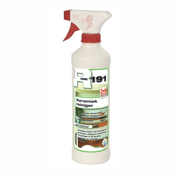 Moeller HMK-C R191 Keramiek reiniger is een gebruiksklare reiniger voor dagelijks gebruik. Voor het reinigen van hardnekkige algemene vervuiling door o.a. vervetting. Ook geschikt voor het reinigen van glasoppervlakken en gepolijste oppervlakken. HMK R191 Keramiekreiniger voor uw dagelijks onderhoud van keramische tafelbladen, uw keramiek in de keuken, woonkamer of badkamer.