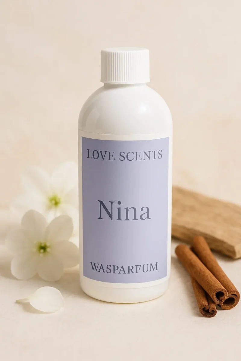 Nina is een betoverend warme wintergeur die direct een gevoel van knusheid en comfort oproept. De compositie wordt gekenmerkt door kruidige accenten van kaneel, die perfect worden aangevuld met diepe, houtachtige ondertonen. Deze combinatie zorgt voor een rijke, omhullende geurervaring die ideaal is voor de koudere maanden. Laat je wasgoed genieten van een sfeervolle, huiselijke geur die warmte en elegantie uitstraalt.