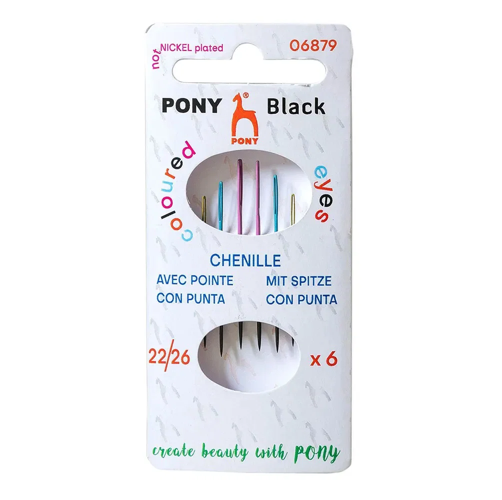 Een setje van 6 gekleurde aluminium chenille naalden Nr. 22-26