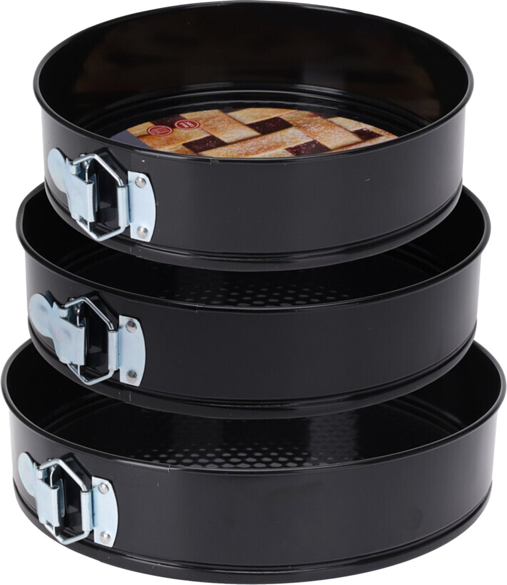 Deze 3-Delige springvormset is compleet met anti-aanbak laag zwart.