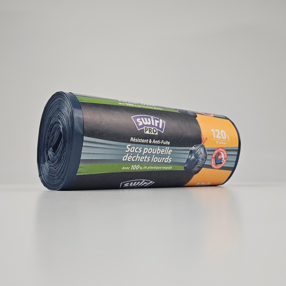 Met hun speciale folie zijn Swirl® PRO Extra stevige afvalzakken bijzonder sterk en duurzaam, en zijn ze bestand tegen eender welk zwaar vuilnis of afval. Met de trekbandsluiting of het sluitlint kan de zak gemakkelijk worden gesloten en handig worden vervoerd. Deze Extra stevige afvalzakken garanderen dat zwaar of omvangrijk afval op een schone manier wordt verwijderd. Alle formaten (60 & 120 liter) zijn betrouwbaar en handig. Deze feiten zullen je meteen overtuigen: