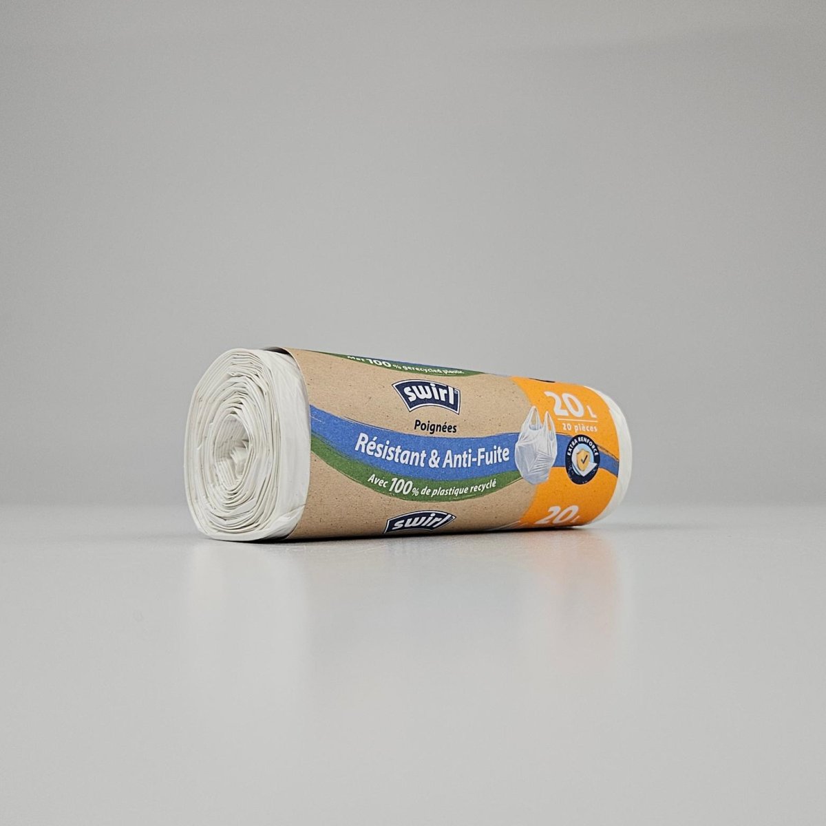 De folie van de Swirl® Scheurvast & Lekvrij pedaalemmerzakken met handvatten is extra dik om te garanderen dat de zakken niet scheuren of gaan lekken. Gemaakt van 100% gerecycled plastic afkomstig van je PMD-afval.