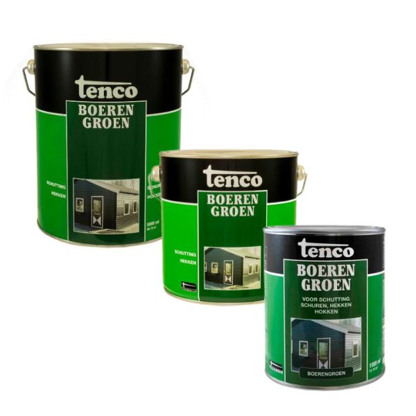 Tenco Boerengroen is een klassiek houtbeschermingsmiddel en de vervanger voor het product wat voorheen bekend stond als groene carbolineum. Geeft het buitenhoutwerk een zeer goede bescherming en een authentiek uiterlijk waarbij de diepgroene kleur de houtstructuur accentueert. Is eenvoudig te verwerken en makkelijk in onderhoud. Voor een betere hechting adviseren wij nieuw geïmpregneerd hout pas na enkele weken te behandelen.