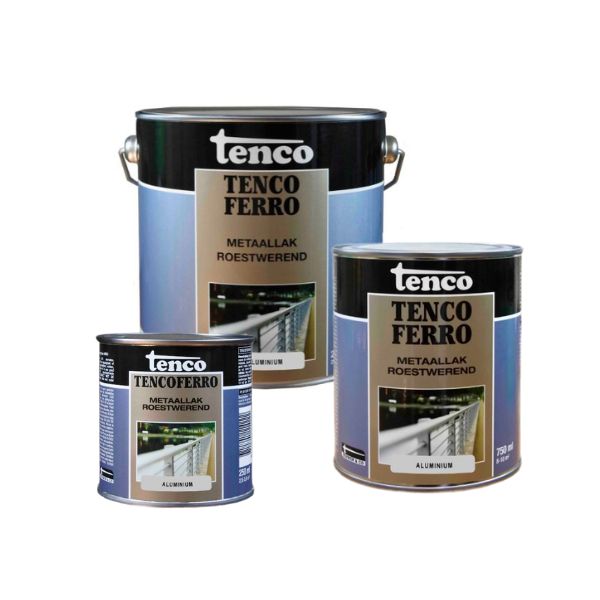 Tenco Ferro metaallak Aluminium is een ijzersterke zijdeglanzende metaallak met ingebouwde menie. Tenco Ferro metaallak is een grondverf, roestwerende menie en aflak in één systeem. Hierdoor is een voorbehandeling met menie of een andere grondlaag op een metalen ondergrond overbodig.