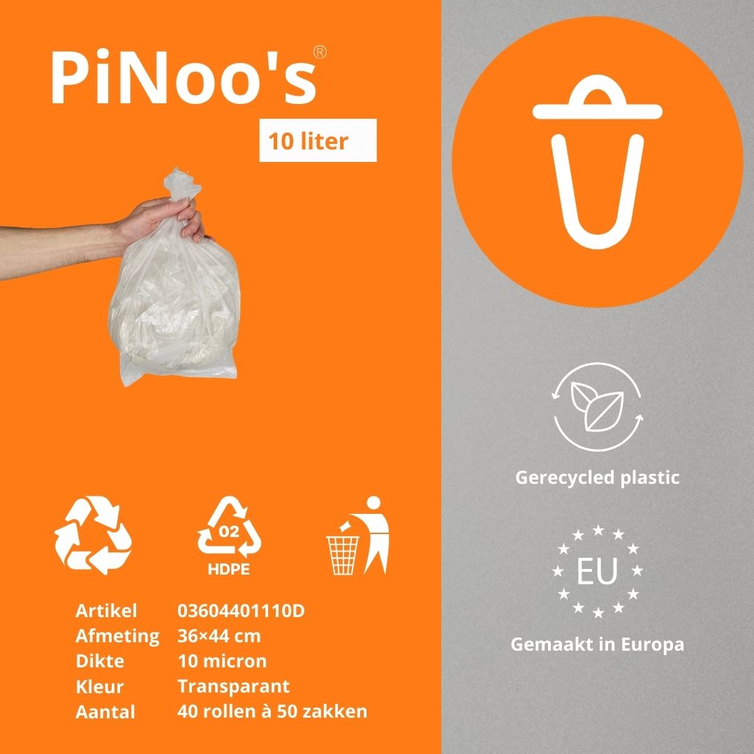 Pedaalemmerzakjes van 10 liter van PiNoo’s zijn speciaal ontworpen voor kleine afvalbakken in keukens, kantoren, badkamers of sanitaire ruimtes. Deze transparante zakjes zijn gemaakt van stevig HDPE-plastic, waardoor ze scheur- en lekbestendig zijn bij dagelijks gebruik. Het compacte formaat van 10 liter maakt het eenvoudig om afval netjes te verzamelen en snel te vervangen, terwijl de doorzichtige folie controle van de inhoud en correcte afvalscheiding mogelijk maakt. Ideaal voor hygiënische en overzichtelijke afvalinzameling.